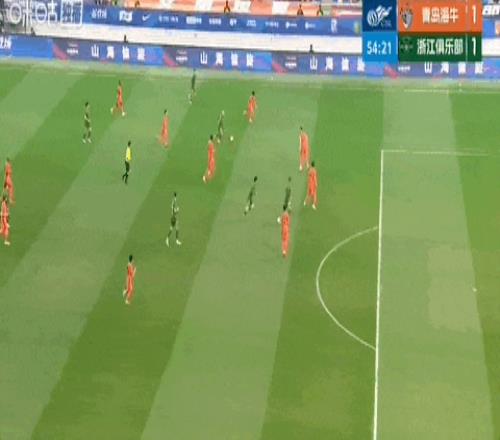 第54分钟,米特里策横传,王钰栋破门,浙江队扳平比分。