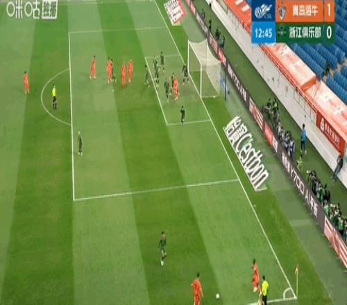 第13分钟,青岛海牛开出战术角球,林创益送出精准传中,后点埃朱马高高跃起力压托利奇头槌破门,海牛取得1比0领先。